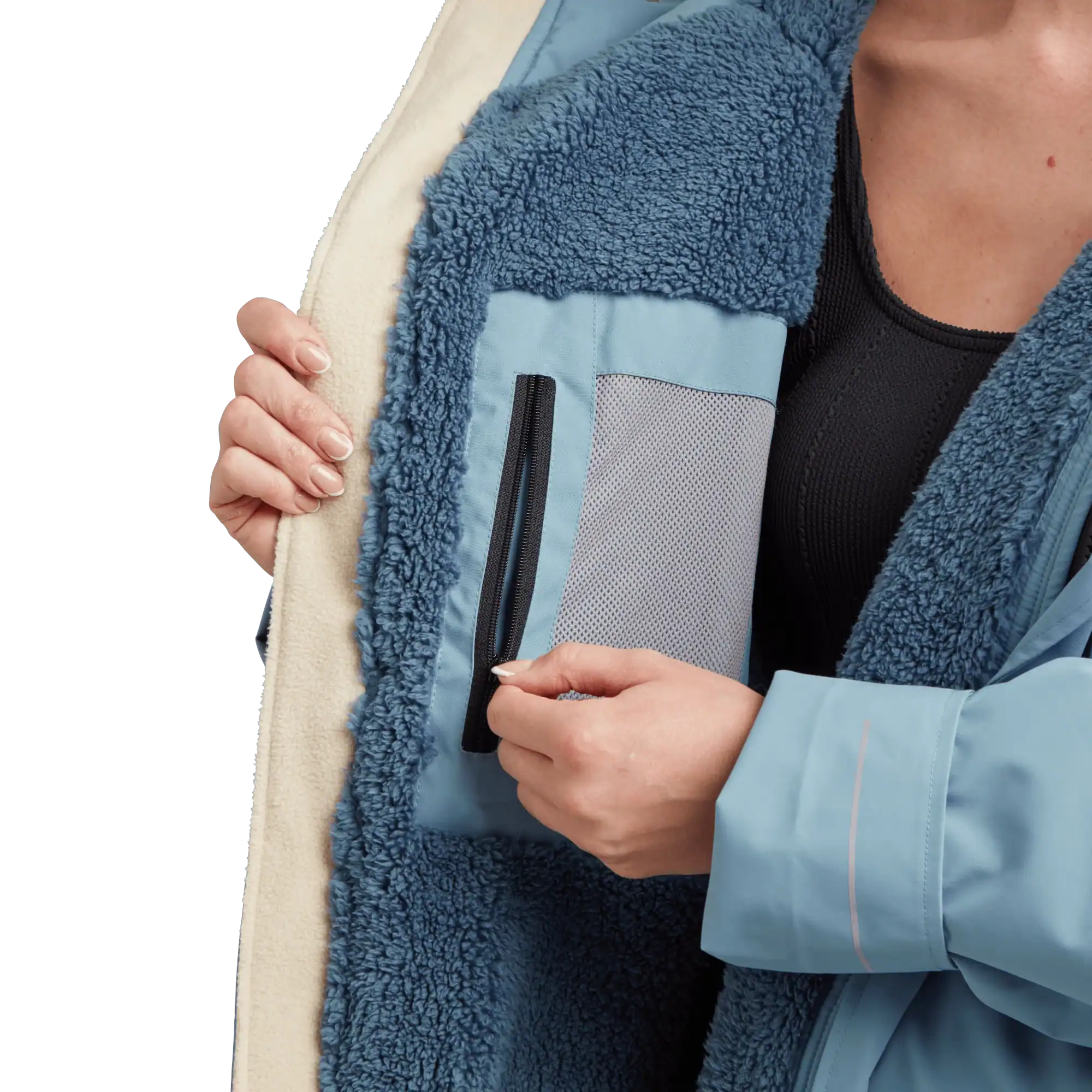 Conçue pour vous garder au sec et au chaud. Grâce à son tissu extérieur imperméable et respirant de qualité supérieure (15 000 mm / 8 000 g/m²/24h) et à sa doublure en polaire Sherpa ultra-douce, la veste de change Red Paddle Pro change vous offre un confort optimal après chaque aventure. La technologie DWR sans PFC assure une imperméabilité durable, tandis que la membrane respirante régule la température pour vous garder au sec.