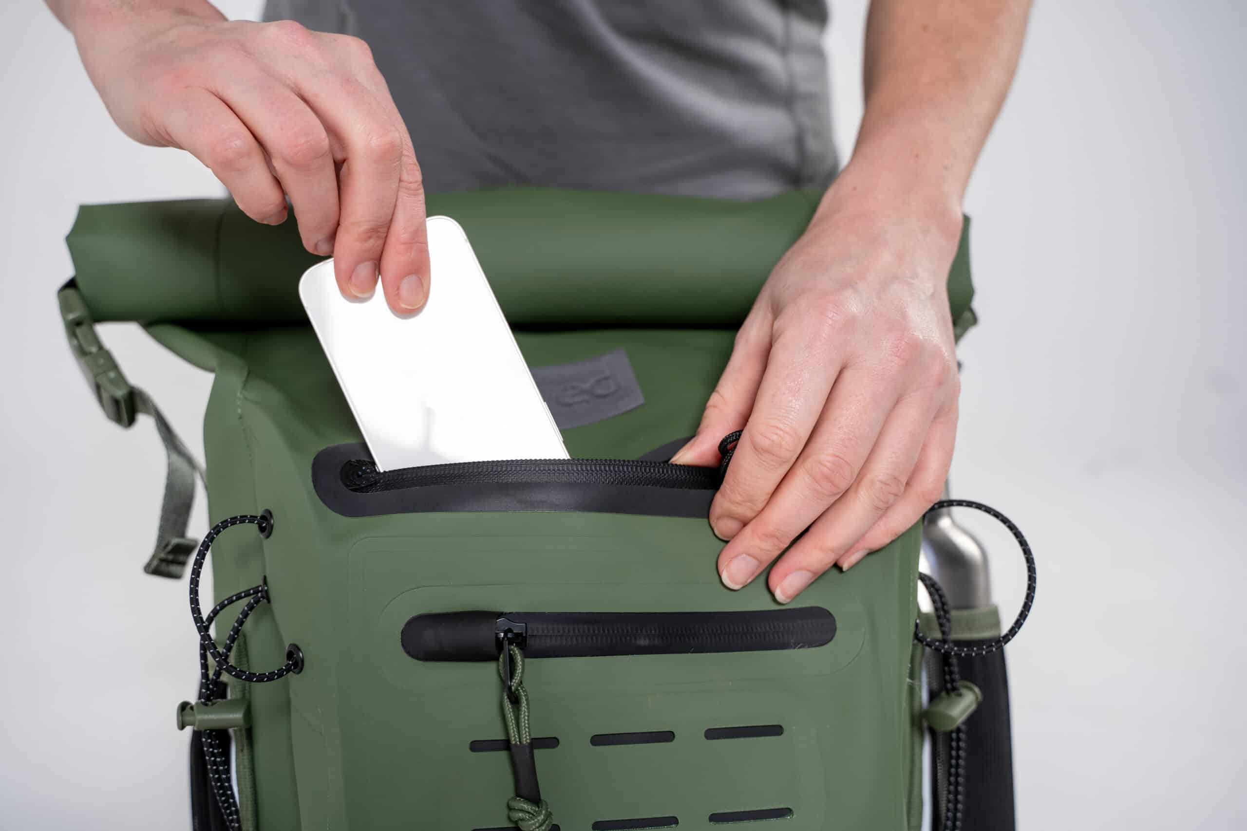 Construit en tissu recyclé Armor Tech très durable avec une fermeture à enroulement fiable, il est complètement imperméable.